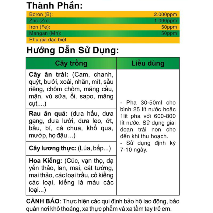 B: 2.000ppm, Zn: 1.000ppm, Fe: 50ppm, Mn: 50ppm