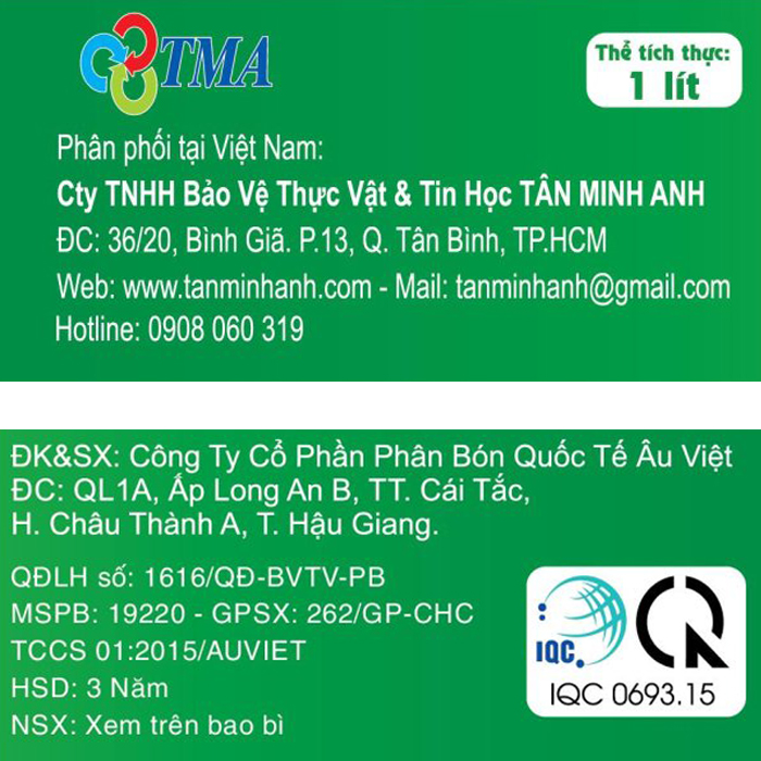 Pha 30-50ml cho bình 25 lít nước hoặc 1lits cho 600 - 800 lít nước.